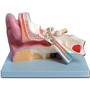 Il modellino illustra l'orecchio esterno, medio ed interno.