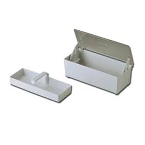 Vaschetta in plastica completa di supporto perforato portastrumenti, particolarmente indicate per la sterilizzazione a freddo di strumentario.